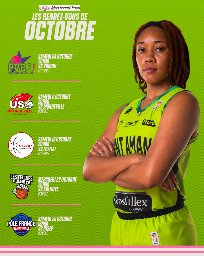 Voici le programme qui attend vos Green Girls en ce mois d'octobre avec 5 matchs au programme dont 3 à domicile !
