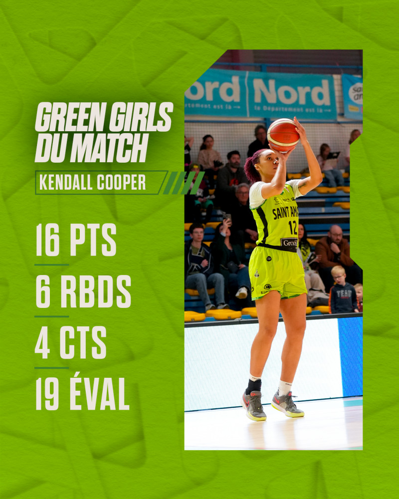 Kendall Cooper est élue Green Girls du match, elle cumule 𝟭𝟲 𝗽𝗼𝗶𝗻𝘁𝘀, 𝟲 𝗿𝗲𝗯𝗼𝗻𝗱𝘀, 𝟯 𝗽𝗮𝘀𝘀𝗲𝘀 𝗱𝗲́𝗰𝗶𝘀𝗶𝘃𝗲𝘀, 𝟰 𝗰𝗼𝗻𝘁𝗿𝗲𝘀 𝗽𝗼𝘂𝗿 𝟭𝟵 𝗲́𝘃𝗮𝗹𝘂𝗮𝘁𝗶𝗼𝗻𝘀 !