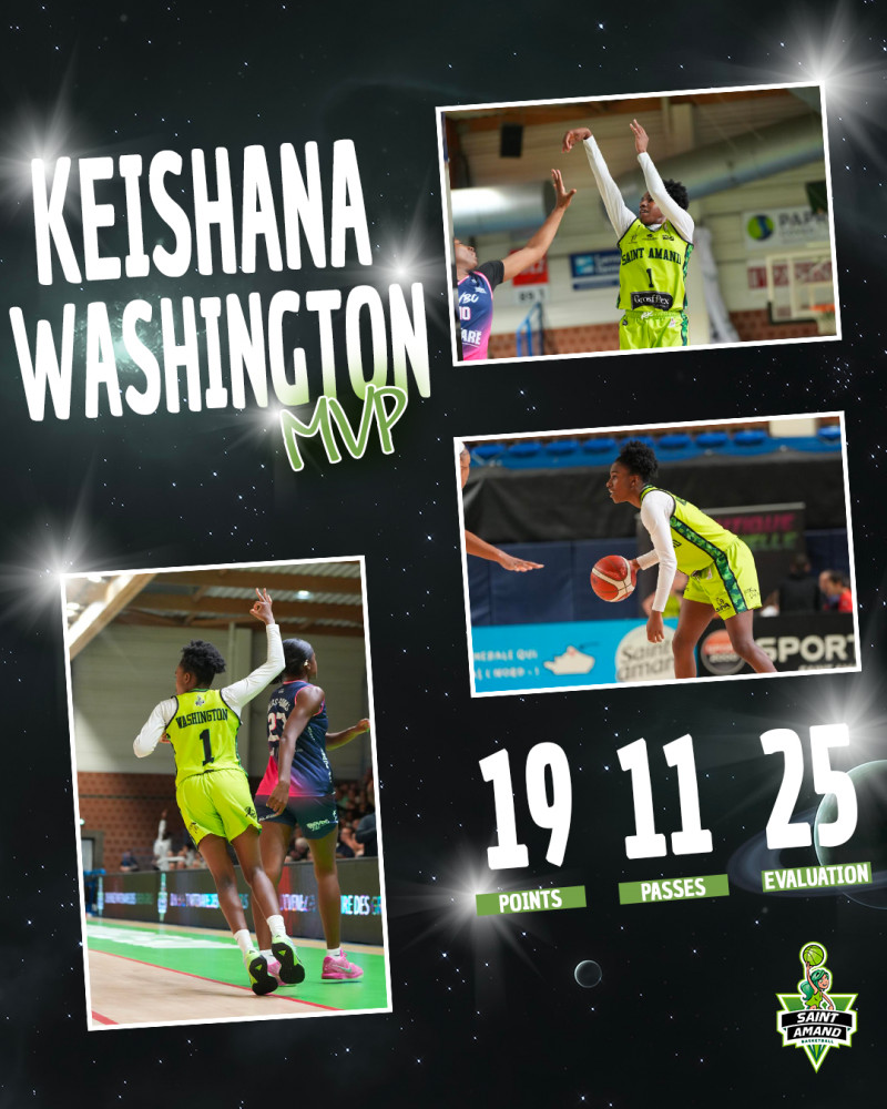 𝗞𝗲𝗶𝘀𝗵𝗮𝗻𝗮 𝗪𝗮𝘀𝗵𝗶𝗻𝗴𝘁𝗼𝗻 est élu MVP du match, elle cumule 𝟭𝟵 𝗽𝗼𝗶𝗻𝘁𝘀, 𝟭𝟭 𝗽𝗮𝘀𝘀𝗲𝘀, 𝟯 𝗿𝗲𝗯𝗼𝗻𝗱𝘀, 𝟭 𝗶𝗻𝘁𝗲𝗿𝗰𝗲𝗽𝘁𝗶𝗼𝗻 𝗽𝗼𝘂𝗿 𝟮𝟱 𝗱'𝗲́𝘃𝗮𝗹𝘂𝗮𝘁𝗶𝗼𝗻 !