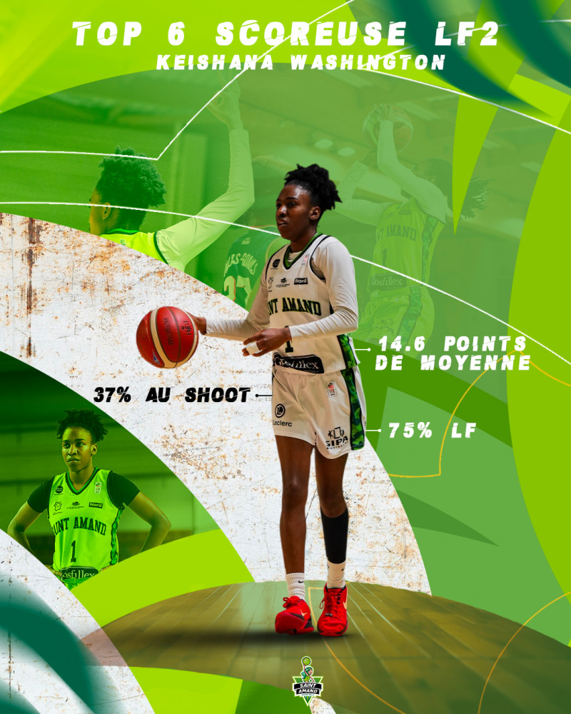 Notre meneuse Keishana Washington se hisse à la 𝟲ᵉ 𝗽𝗹𝗮𝗰𝗲 𝗱𝗲𝘀 𝗺𝗲𝗶𝗹𝗹𝗲𝘂𝗿𝗲𝘀 𝘀𝗰𝗼𝗿𝗲𝘂𝘀𝗲𝘀 de la ligue avec une moyenne de 𝟭𝟰,𝟲 𝗽𝗼𝗶𝗻𝘁𝘀 𝗽𝗮𝗿 𝗺𝗮𝘁𝗰𝗵 !